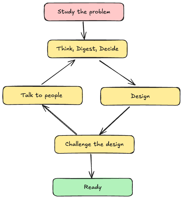 التصميم الجيد مش بيجي من أول مرة، هو عملية مستمرة: دراسة، تصميم، تحدي، حوار، تكرار، تنفيذ، ثم تعلم وتكرار تاني.